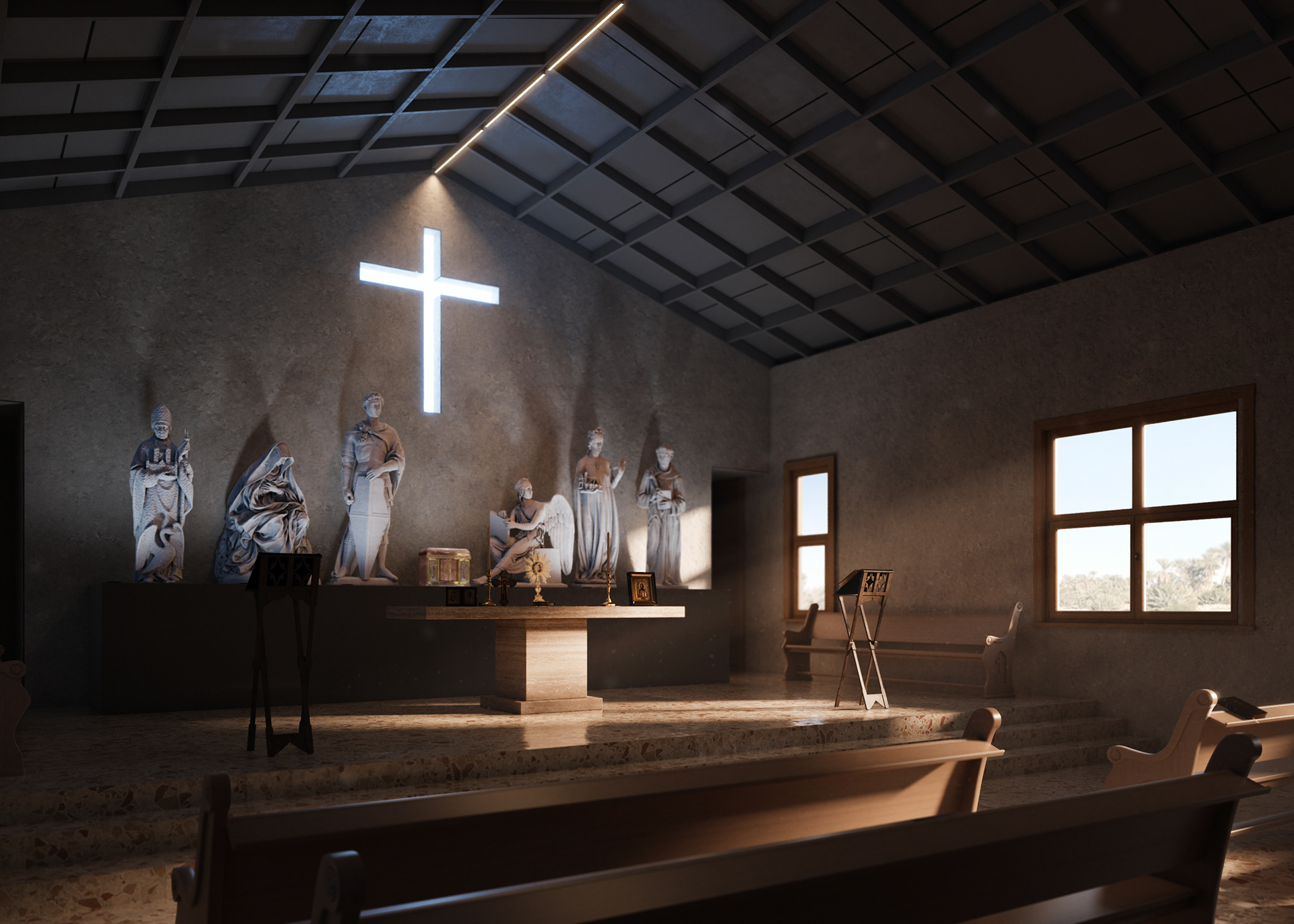 A low cost charity project as a prototype to be built in Senegalese villages where churches are missing.